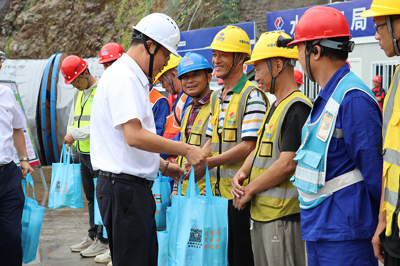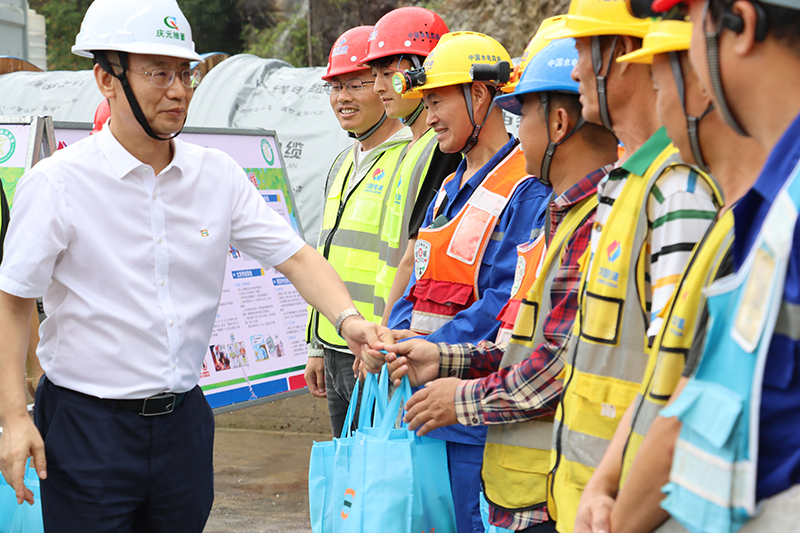在庆元抽蓄,慰问组先后深入通风兼安全洞、永久砂拌场及EPC 项目部等关键施工与管理现场,实地察看工程进度、安全生产及防暑降温措施落实情况,并与一线员工亲切交流,叮嘱大家在高温作业中注意劳逸结合,确保人身安全与工程质量“双保障”。