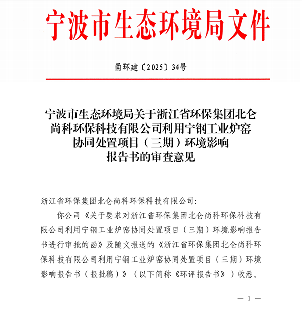 7月29日,尚科环保成功取得《宁波市生态环境局关于ebpay钱包集团北仑尚科环保科技有限公司利用钢铁工业炉窑协同处置项目(三期)环境影响报告书的审查意见》(甬环建〔2025〕34号),获准建设资源化利用焚烧后废金属10000吨/年。