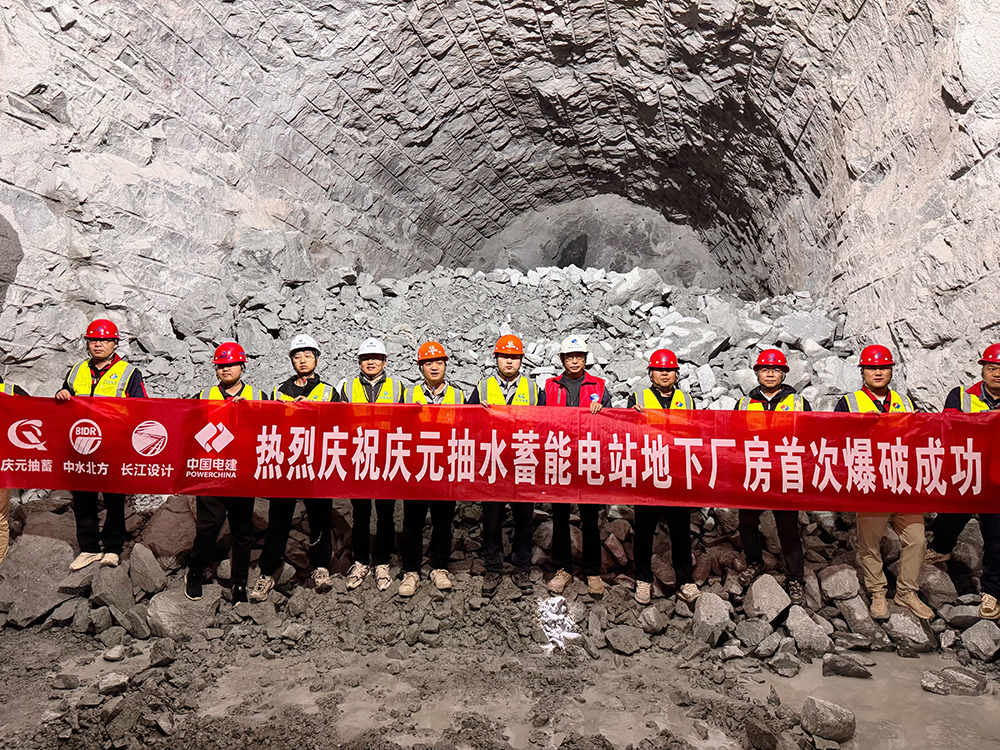 4月26日,浙江省庆元抽水蓄能电站地下厂房施工现场传来振奋人心的喜讯!随着一声巨响,地下厂房中导洞成功首爆,标志着项目正式迈入主体工程建设阶段。