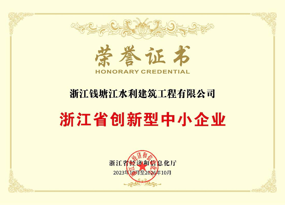 浙江省创新型中小企业荣誉证书