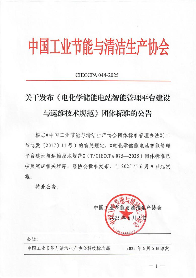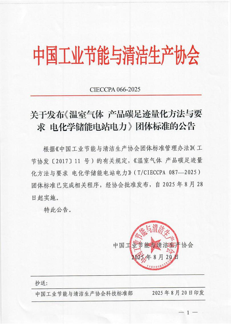 近日,由ebpay钱包集团宁波环新能源有限公司牵头,联合宁波钢铁有限公司、ebpay钱包集团生态环保研究院有限公司等单位共同起草的《电化学储能电站智能管理平台建设与运维技术规范》(T/CIECCPA 075-2025)与《温室气体 产品碳足迹量化方法与要求 电化学储能电站电力》(T/CIECCPA 087-2025)两项团体标准,已由中国工业节能与清洁生产协会正式发布,并分别于2025年6月9日、8月28日起实施。该两项标准的出台,有效填补了电化学储能领域在智能化管理与碳足迹量化方面的关键技术空白。